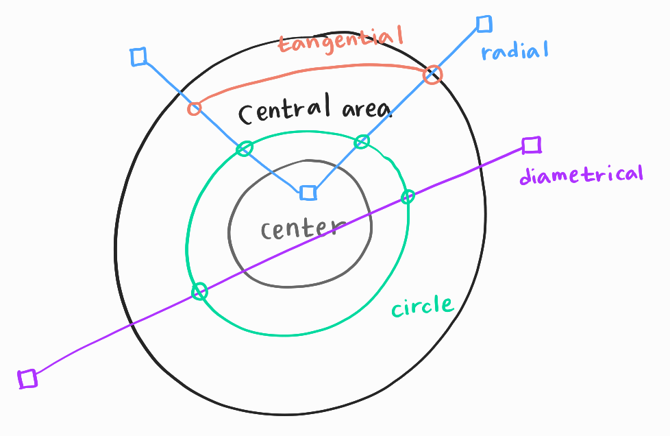 - radial ine과 diametrical line을 교차하며 통합 네트워크를 형성함